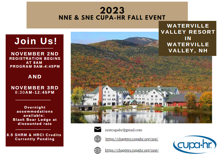 Register: https://nnecupahr.wufoo.com/forms/nne-sne-cupahr-fall-2023-conference/