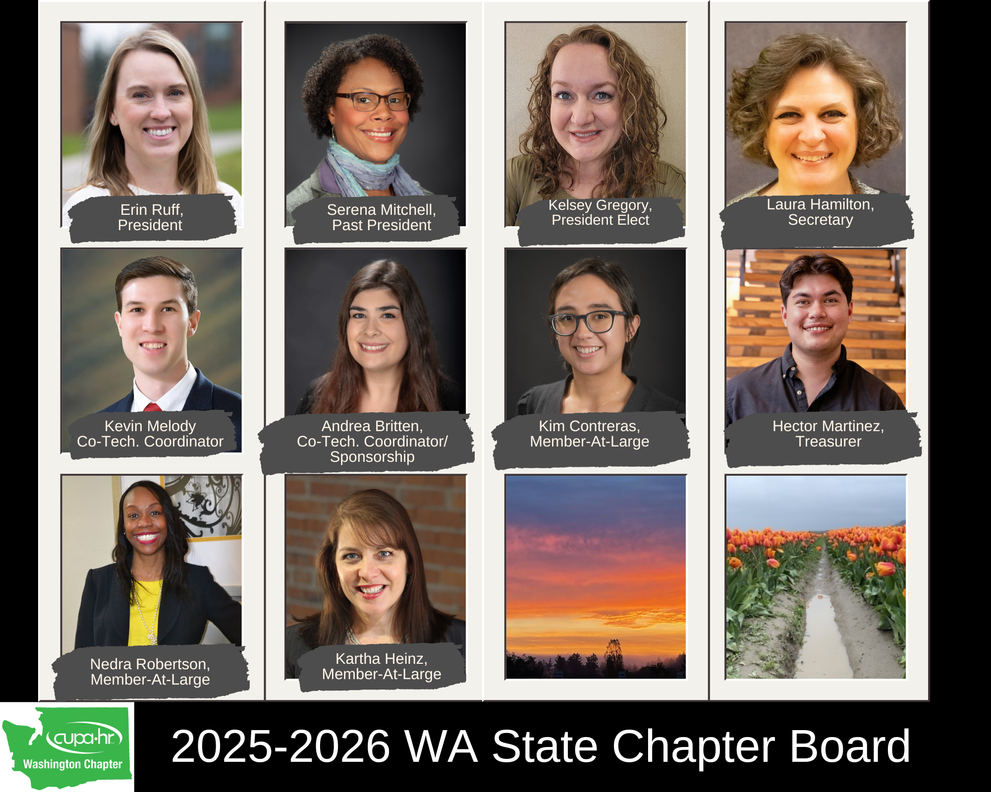The CUPA-HR Washington Chapter brings together HR professionals in higher education to exchange best practices, connect with others in our field, and provide meaningful educational opportunities on topics important and relevant to our field. We are always looking for higher ed HR professionals in Washington state who want to get involved and help out. If this sounds like you, please contact us.